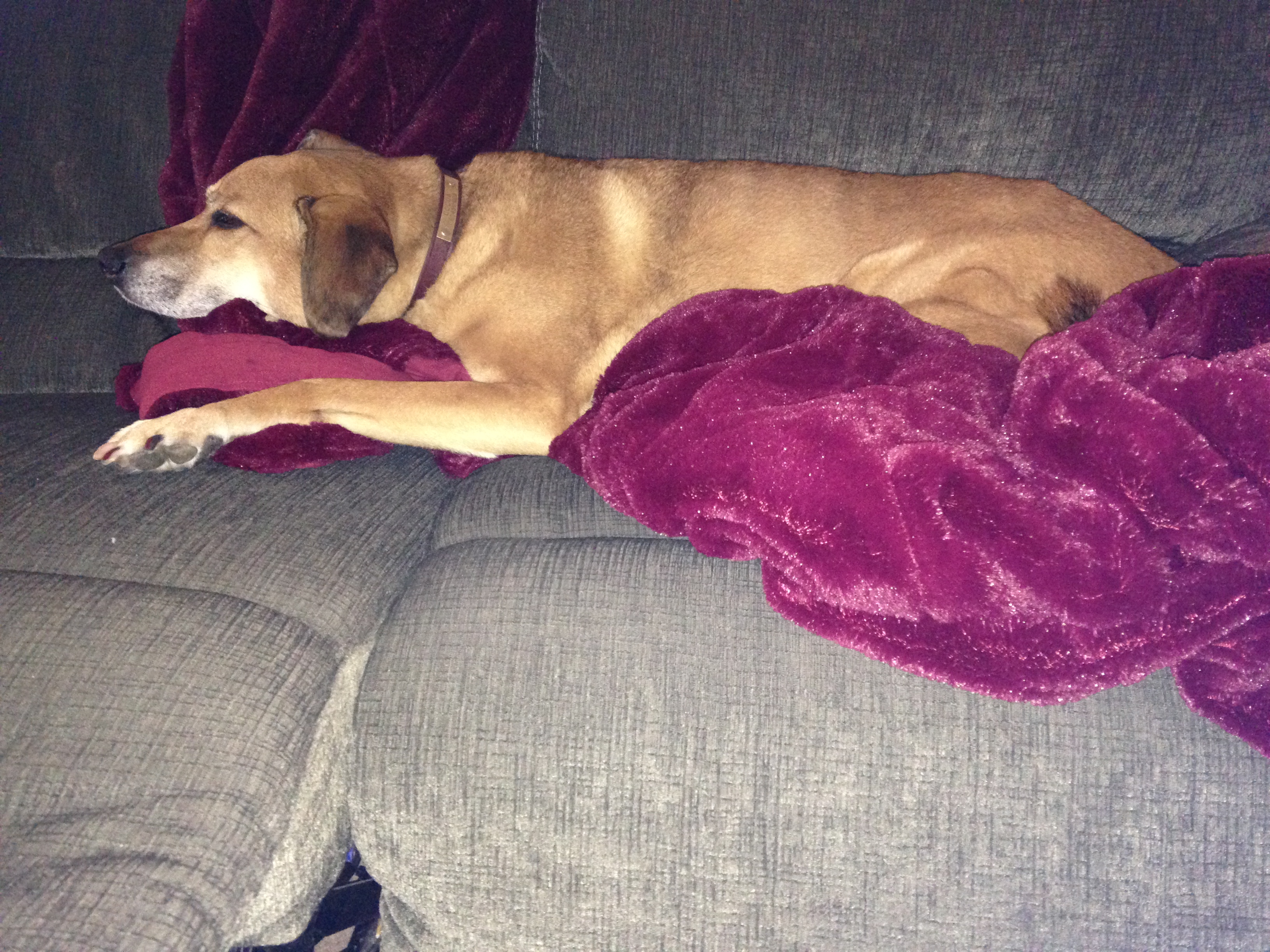 The Dog: note the super-soft blanket and matching manicure (thanks Aussie Pet Mobile!) as she lounges on my side of the couch.